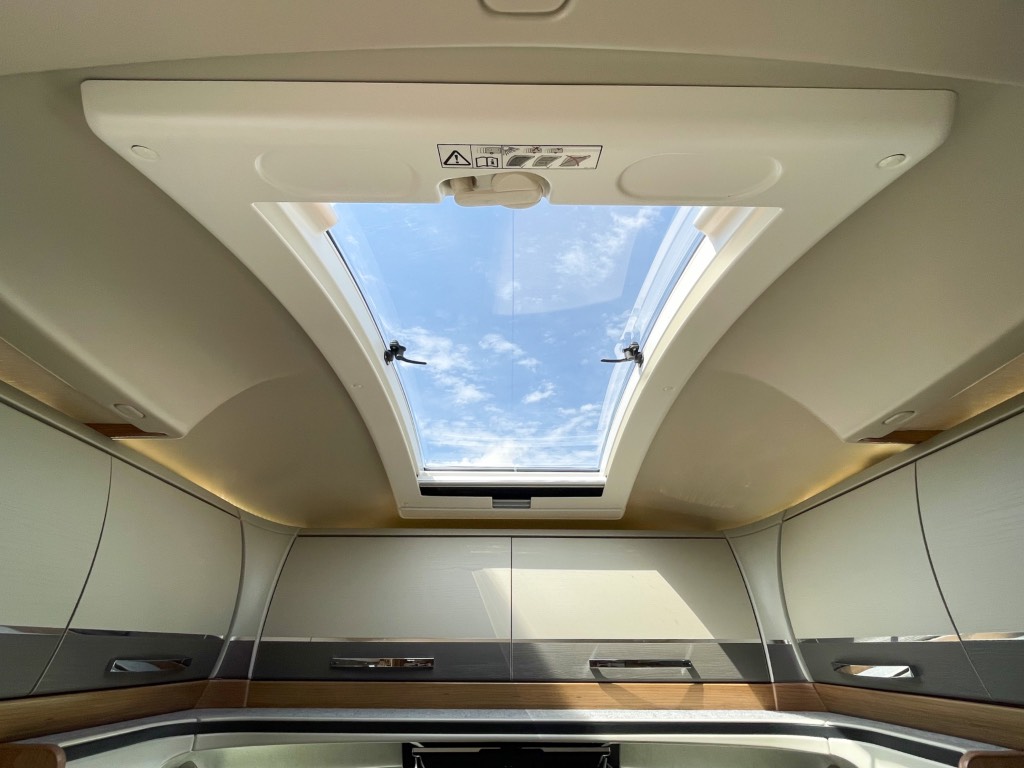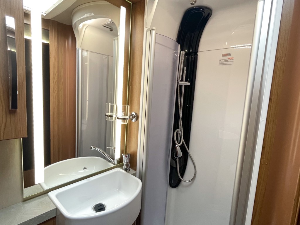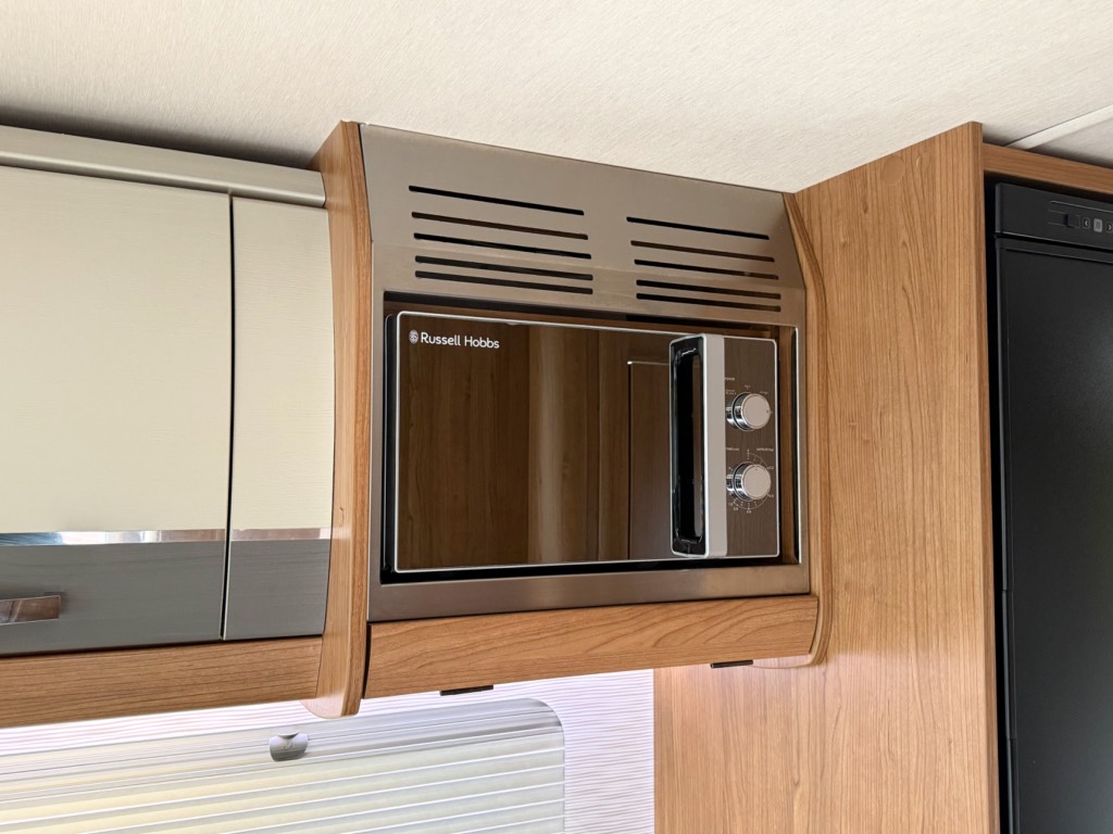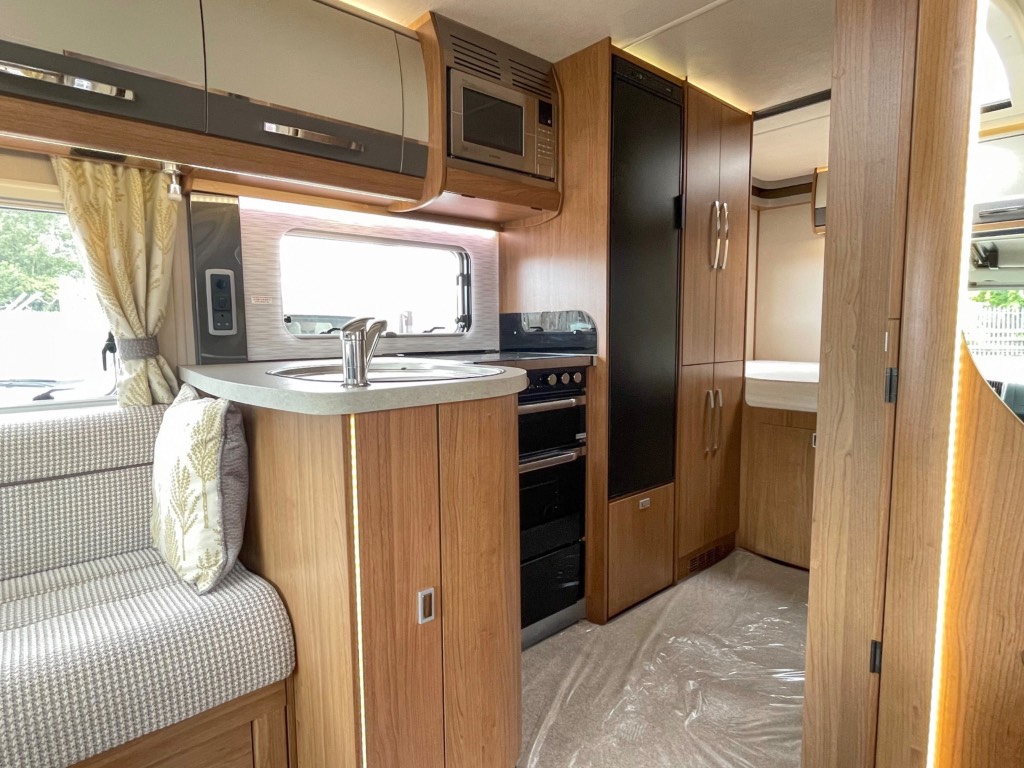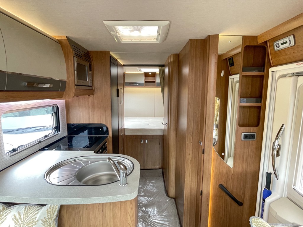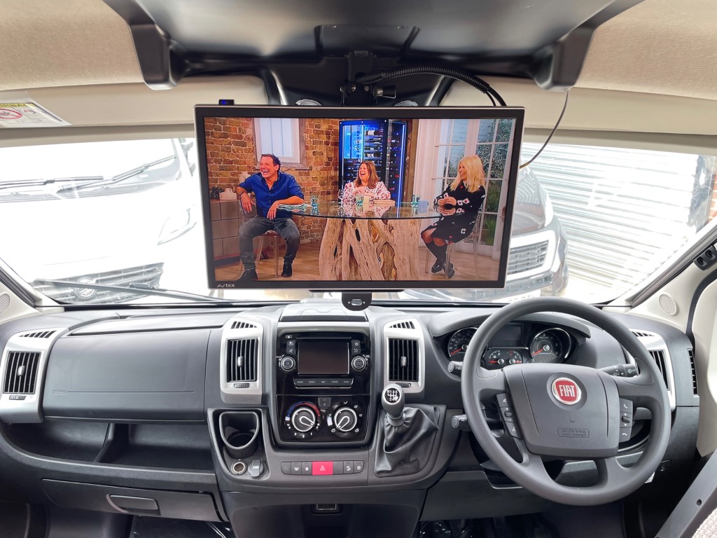 This one has the upgraded Media Pack 2 with touch screen media centre, sat nav, DAB radio, USB and Bluetooth. Also on board is dual fuel heating and water heating along with heated fresh & waste water tanks, rear air suspension, additional leisure battery, towbar, wind out awning, panoramic roof light, drop down Avtex TV, solar panel, cab air conditioning, cruise control, reversing cameras, fitted microwave, cab blinds, kitchen extractor fan, safe, electric step, entrance door with remote central locking, waste bin and umbrella holder, removable carpets, TV aerial, outside BBQ point, driver and passenger swivel seats and much more.
