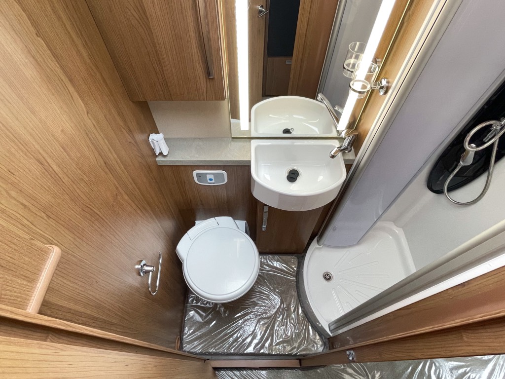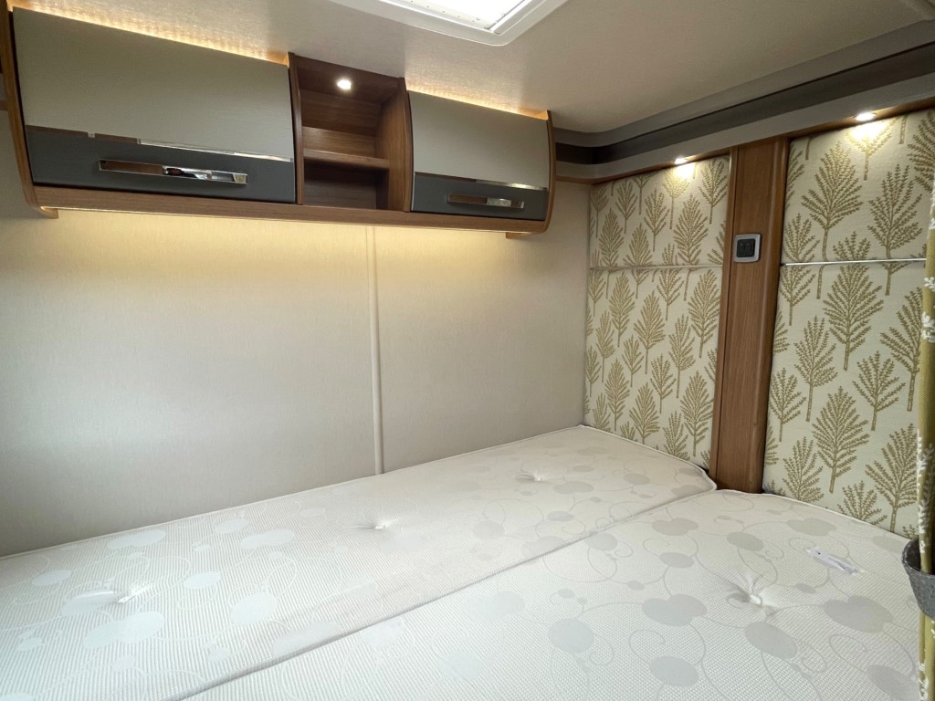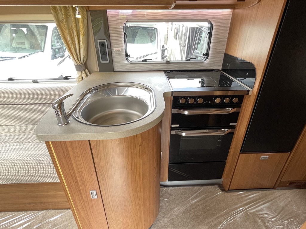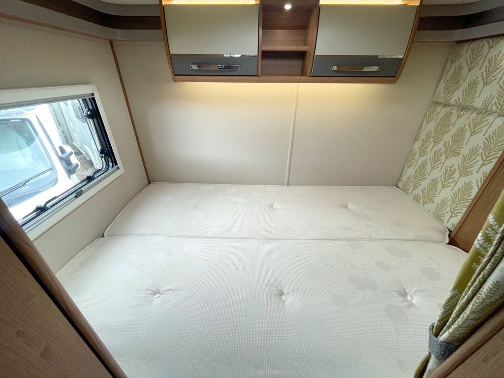 The 632 is a 4 berth and features a fixed transverse double bed at the rear over a generous full width garage. At the front is the lounge/dining area that converts into another large double bed. The L-shaped kitchen is centrally located as well as the bathroom with separate shower.
