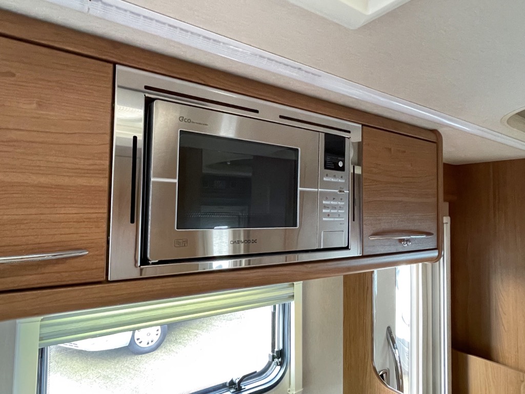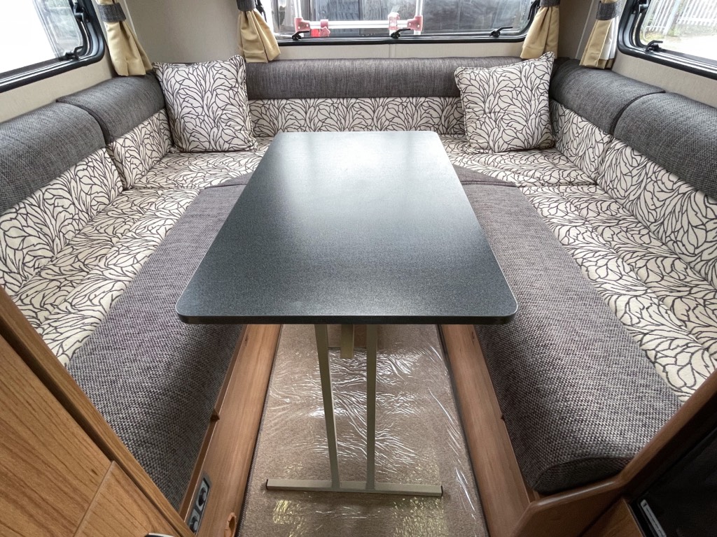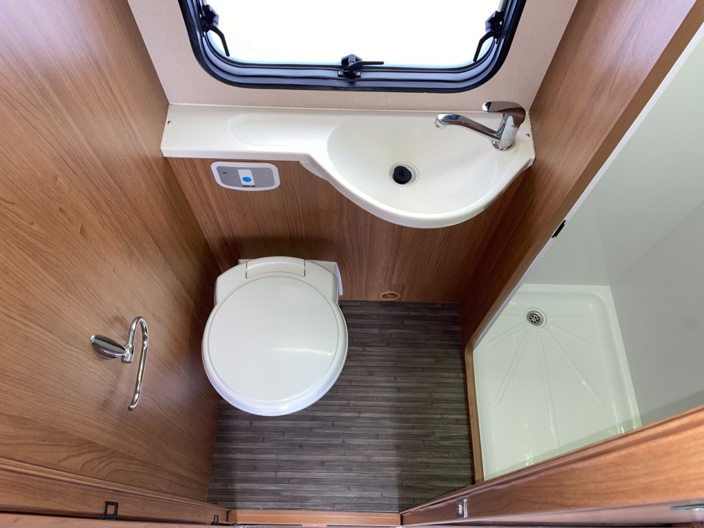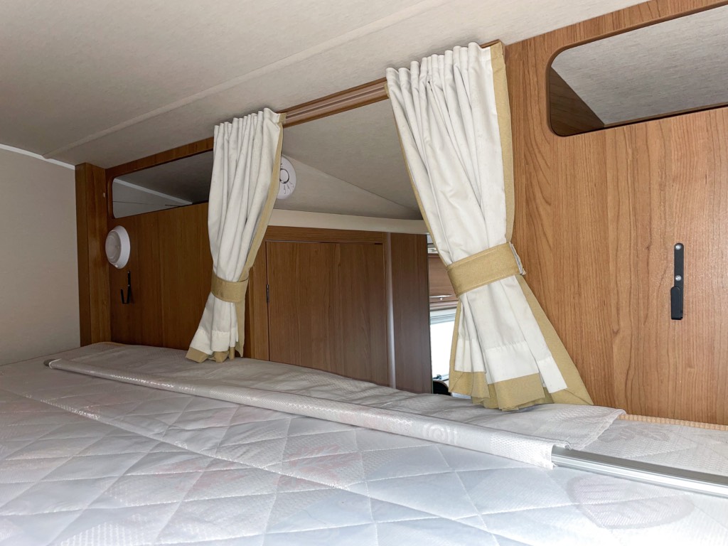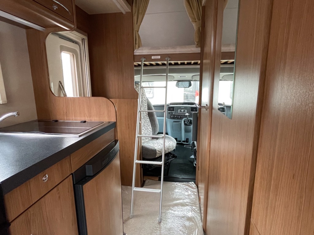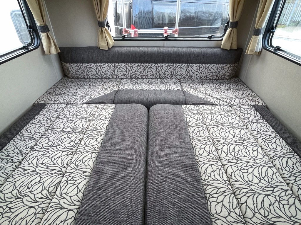 The 625 is a 4 berth featuring the popular U-shaped rear lounge which is perfect for relaxing and dining. This converts into a huge double bed or gives an alternative option of two single beds using the parallel sofas. There is another double bed above the cab which provides useful storage space when not in use. Centrally located is the fully equipped kitchen and opposite this is the bathroom complete with separate shower. This one has Truma heating & water heating and is very well kitted with extras including: an awning, solar panel, bike rack, external shower point, external BBQ point, microwave, TV aerial, cab air conditioning, cruise control, alloy wheels and removable carpets.