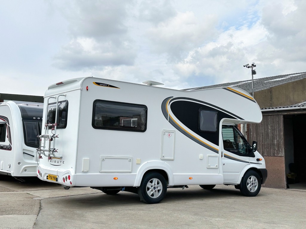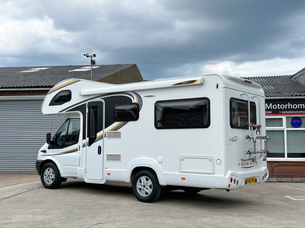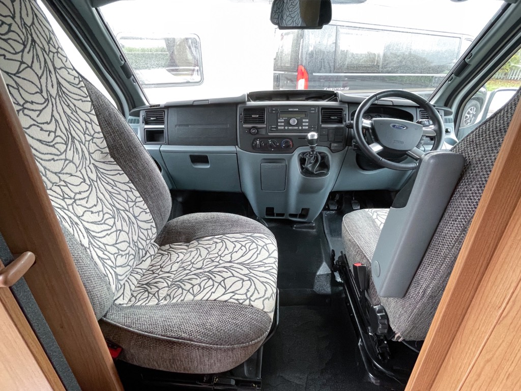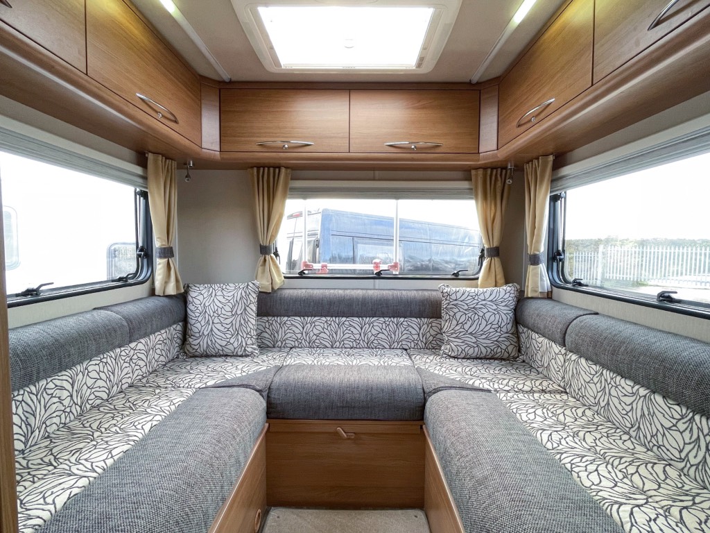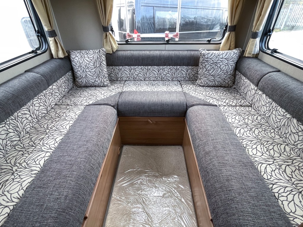 The 625 is a 4 berth featuring the popular U-shaped rear lounge which is perfect for relaxing and dining. This converts into a huge double bed or gives an alternative option of two single beds using the parallel sofas. There is another double bed above the cab which provides useful storage space when not in use. Centrally located is the fully equipped kitchen and opposite this is the bathroom complete with separate shower. This one has Truma heating & water heating and is very well kitted with extras including: an awning, solar panel, bike rack, external shower point, external BBQ point, microwave, TV aerial, cab air conditioning, cruise control, alloy wheels and removable carpets.